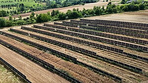 Auf den landwirtschaftlichen Versuchsflächen des Ihinger Hofes in Renningen wurde im August/September 2025 eine hoch aufgeständerte Agri-PV-Forschungsanlage mit einer Fläche von 0,36 ha installiert. Die bifazialen Doppelglasmodule mit 218 kWp Nennleistung sind in 5,5 m Höhe montiert und erzeugen eine durchschnittliche Bodenbeschattung von etwa 30 %. Die landwirtschaftliche Nutzung erfolgt in 13 × 14 m großen Parzellen, in denen verschiedene Kulturen und Sortenparallel untersucht werden können. Die Anlage dient der Erforschung u.a. von Ertrags- und Qualitätsveränderungen, mikroklimatischen Prozessen und Bodenparametern.